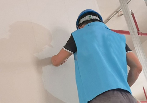 包括木龍骨或輕鋼龍骨、集成吊頂,電路改造,包括鑿平鋪磚及防水,拆墻,徹墻,刮膩?zhàn)樱? 打磨,刷膠漆,及形象墻基層等