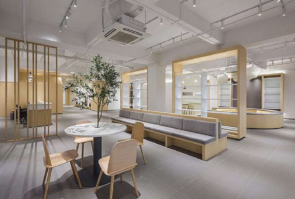 選擇適合的辦公室設(shè)計(jì)地板,比如實(shí)木地板是木材經(jīng)烘干、加工后制成的地面裝飾材料,花紋自然、使用安全環(huán)保,但是安裝成本高,不好打理維護(hù),容易變形。強(qiáng)化復(fù)合木地板是在原木粉碎后,填加膠、防腐劑、添加劑,經(jīng)熱壓機(jī)高溫高壓壓制處理而成,強(qiáng)度高、規(guī)格統(tǒng)一、耐磨、防蛀等優(yōu)點(diǎn)。